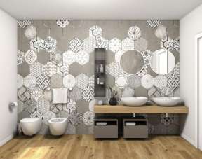 I pavimenti e rivestimenti sono in gres porcellanato, sanitari di tipo sospeso, infissi nuovi con vetrocamera.