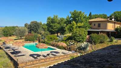 5 Appartamenti + 9 Camere matrimoniali con bagno en-suite, Cucina professionale, Sala pranzo, 220mq di Porticato, Piscina 12x6, Rimessa / Magazzini 320mq, Volume inutilizzato 120 m², Terreno 4,4 ha con la possibilità di acquistarne altro.