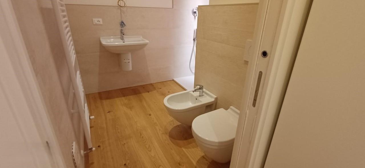 In signorile stabile con ascensore appartamento nuovo da impresa consegnato in classe energetica A, parzialmente arredato, composta da soggiorno con angolo cottura, tre camere, doppi servizi. Riscaldamento a pavimento, aria condizionata, cantina. Volendo posto auto coperto, deposito bici. Già disponibile. No studenti, no property manager.