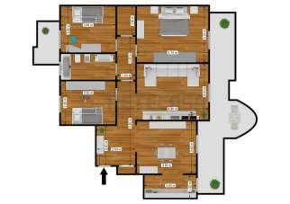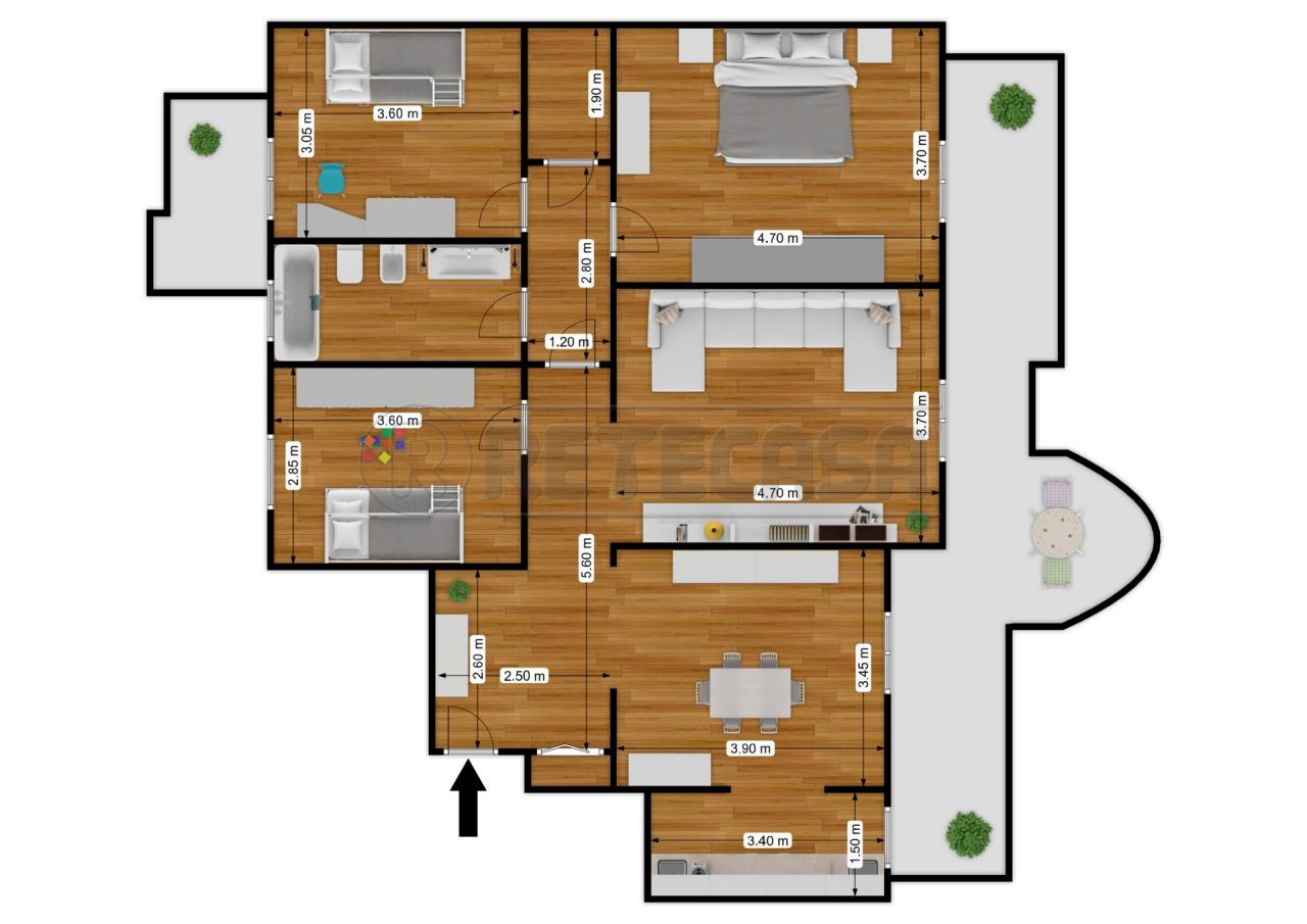 La zona notte è composta da una camera matrimoniale spaziosa e da due ampie camerette, ideali per i più piccoli o per creare un angolo studio.