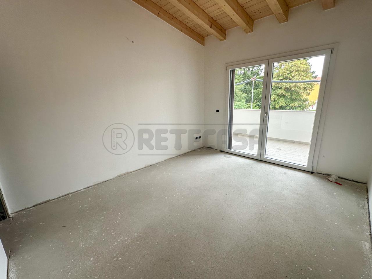 FIUMICELLO-VILLA VICENTINA: Sogni una casa nuova, moderna sotto l´aspetto energetico, ma anche progettuale e la vuoi anche subito? Abbiamo quello che fa per te!! A Fiumicello, proprio a due passi dalla chiesa di San Valentino e dalla Piazza del Municipio, ti proponiamo una villa a schiera ampia e luminosa, con una superficie di circa 185 mq commerciali distribuiti su due livelli, progettata con la massima cura per garantire un ambiente di vita sereno e confortevole. L´ingresso alla villetta, avviene tramite strada privata. La vettura può essere parcheggiata all´interno dell´autorimessa con basculante elettrico oppure lasciata esternamente, all´interno della proprietà. L´accesso pedonale conduce al grande soggiorno di forma regolare, con cucina progettata con isola centrale e uscita sul secondo giardino che offre la privacy necessaria. Il soggiorno è impreziosito da un elegante caminetto, già installato e pronto all´utilizzo. Al piano terra si trova anche il primo bagno completo e finestrato e un comodo ripostiglio. Il primo piano è progettato per garantire spazi comodi e ben organizzati, infatti non troverai da nessuna parte una casa nuova con tre camere matrimoniali e ben due ripostigli! Dalla matrimoniale si accede alla prima terrazza, leggermente più piccola rispetto a quella a servizio delle altre due camere. Il bagno è ambio e ben organizzato con una doccia spaziosa e moderna. Esternamente la proprietà è completamente recintata, con impianto di irrigazione automatico per mantenere rigoglioso il verde dei giardini. La pompa di calore e l´impiantistica di supporto per il fotovoltaico sono posizionati esternamente, in un vano dedicato, all´interno del quale si trovano anche gli attacchi per la lavatrice e l´asciugatrice. A lato del basculante del garage si trova anche, per chi è già dotato o sta pensando all´acquisto, la predisposizione per la colonnina di ricarica elettrica dell´autovettura. Classe energetica altissima, garantita dal sistema costruttivo Cllimablock della Pontarolo Engineering, con isolamento interno di 6cm, pareti dello spessore di 16cm, ulteriore isolamento esterno di 9cm e sottostante basamento dotato di intercapedine aerata. Il riscaldamento dell´immobile avviene tramite impianto radiante a pavimento con pompa di calore, affiancata ad un impianto fotovoltaico da 6 kW. La costruzione si contraddistingue anche per l´utilizzo di materiali pregiati e di finiture di alta qualità, insomma hai tutto quello di cui hai bisogno! Non aspettare oltre, chiamaci subito per fissare il tuo appuntamento, vivi il sogno della casa perfetta e scopri come il comfort e la tranquillità si fondono in un’esperienza unica! La descrizione dell’immobile, la planimetria riqualificata e le metrature riportate non costituiscono elementi contrattuali ma sono solo indicativi.