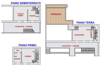 All’interno l’appartamento è molto particolare. È possibile sfruttarlo come BILOCALE: quindi, cucina al piano terra e, al piano primo mansardato, la camera con il bagno. Al piano seminterrato, con luce diretta, un altro locale ad uso soggiorno oltre ad un bagno.