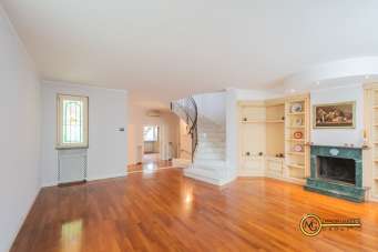 VENDUTA!!!\n\nVignate - centro paese proponiamo lussuosa villa singola con ampie metrature rifinita con capitolato di pregio. La proprietà si sviluppa su più livelli abitativi tutti collegati tra loro da scala interna.\nDal giardino privato dove ci accoglie un grande ulivo secolare, accediamo al piano terra dove entrando dalla porta blindata troviamo un´ampio scenografico ingresso, un confortevole soggiorno,con camino, una grande cucina abitabile con zona pranzo, bagno di servizio ed uno studio; dal soggiorno si accede ad una bellissima veranda coperta da utilizzare sia come giardino d´inverno che locale per organizzare scenografice feste o riunioni famigliari per le diverse ricorrenze , la scala interna bellissima, ovoidale in marmo e ferro battuto conduce al piano superiore dove troviamo oltre un grande disimpegno, due ampie camerette con bagno e una lussuosa suite matrimoniale con bagno patronale, cabina armadio e balcone.\nNella zona seminterrata si trova una grande e luminosa taverna anch´essa ottimamente rifinita nei suoi dettagli, dei vani cantina, locali di servizio, lavanderia ed un box molto ampio dove poter tranquillamente parcheggiare almeno 3/4 auto. La Zona giardino tutta cintata oltre all´irrigazione automatica è gia predisposta per utilizzare il barbecue a gas\nLa proprietà si presenta in ottime condizioni sia esterne che interne con capitolato di pregio, pavimentazione in parquet in tutti i suoi ambienti, bagni in marmo con decori anchessi in marmo ed in armonia con vetri finestra e top, la taverna tutta in bellissimo cotto, gli infissi con doppi vetri, sono in legno interno ed alluminio esterno, tutti in stile inglese. La Villa adatta a soddisfare i palati piu fini è pronta da abitare.