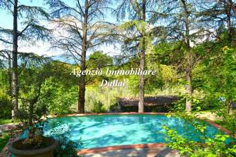 Barberino di Mugello (pressi) - In collina, immersa nel verde con splendida vista lago, panoramica villa con piscina, parco, garage, annessi e terreno agricolo. Si accede alla proprietà dal parco privato (6400 mq) in ottimo stato manutentivo con piante, fiori ed alberi ad alto fusto. La villa ha affacci sul lago e sulle colline, si sviluppa su 2 piani fuori terra per totali 14 vani. Catastalmente è composta da 2 unità immobiliari, piano terra e piano terra rialzato, entrambe con ingresso indipendente ed in categoria catastale A/2. Le due unità sono una sopra l´altra e sono facilmente collegabili con scala interna. Fanno parte della villa anche 2 garage e la centrale termica. La piscina in muratura si trova al centro del parco con affaccio sul lago; scendendo troviamo 2 annessi rispettivamente di 25 mq e 37 mq. Completa la proprietà il terreno agricolo (7000 mq) contiguo al parco, e più precisamente: uliveto e vigneto (2780 mq), prato (210 mq), seminativo arborato (2020 mq), seminativo (1993 mq). Per motivi di privacy gli indirizzi degli immobili sono approssimativi. Maggiori informazioni e foto sul nostro sito internet Agenzia Immobiliare Dallai Franco di Scarperia (FI). Valutiamo i vostri immobili per la vendita e per la locazione. Ufficio 0558431039, e-mail franco@immobiliaredallai.com. I nostri orari: lun/gio: 9-15; mar/mer/ven: 12:30-18:30. Negli altri orari ed il sabato mattina riceviamo su appuntamento. Chiusi la domenica.