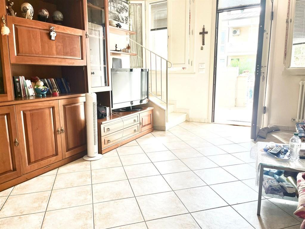 GCAV1M --MADONNA DELL´ALBERO-- proponiamo in contesto residenziale deliziosa villetta a schiera con giardino fronte e retro in parte pavimentato: soggiorno e cucina separati con porta a vetro, bagno, zona lavanderia, ampio garage per due auto. Zona notte: due camere, due terrazze e secondo bagno.